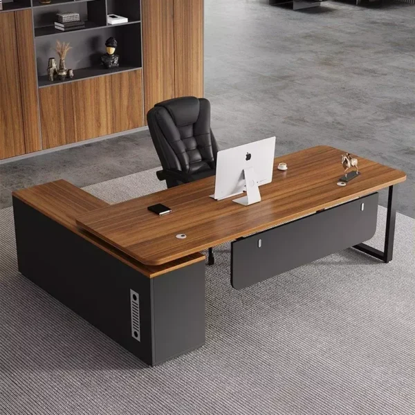 مكتب خشبي مع خزانة جانبية بأدراج مميزة