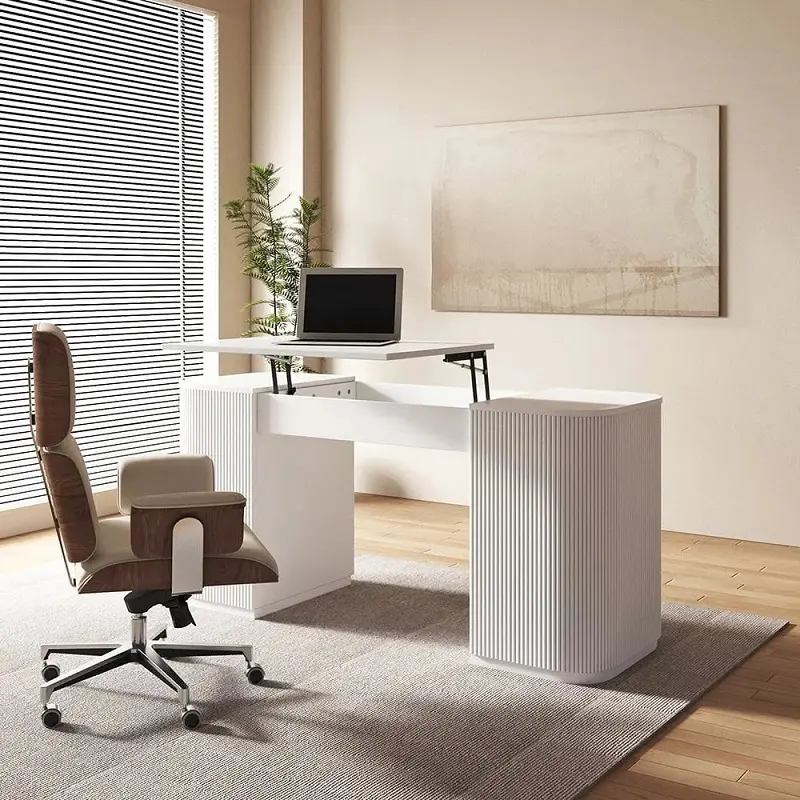 الميزة الرئيسية التي يقدمها هذا المكتب للمستخدم هي خاصية رفع السطح العلوي، والتي تتيح للمستخدم التبديل السلس والسريع بين وضعية الجلوس والوقوف أثناء العمل. هذه الآلية مصممة للمساعدة في تحسين وضعية الجسم وتخفيف الضغط على الرقبة والظهر خلال ساعات العمل الطويلة، وهي نقطة مهمة للباحثين عن جودة الحياة العملية، وتعتبر عنصراً أساسياً لمكاتب العمل الحديثة.
