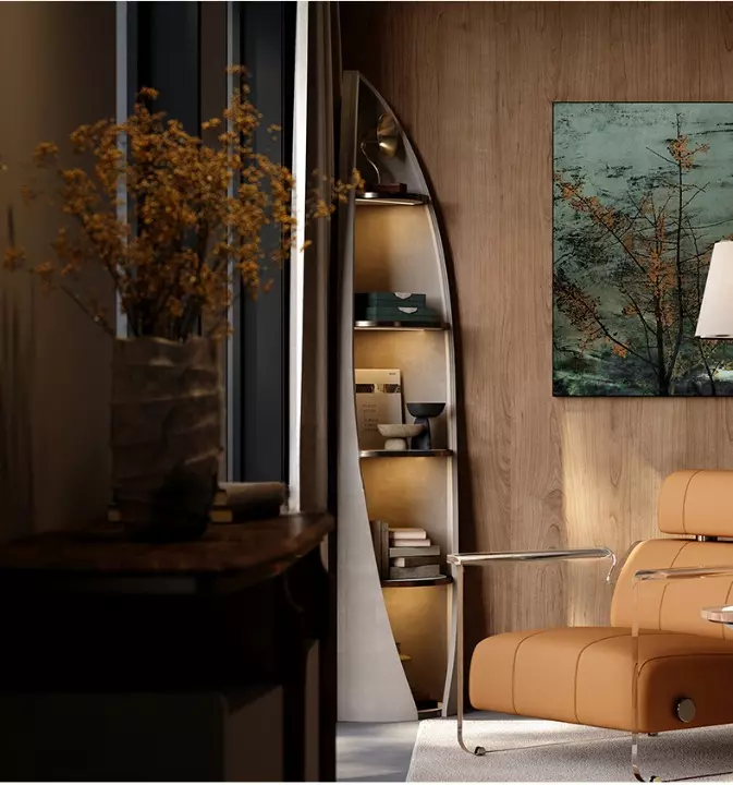 مكتبة رفوف أنيقة وعملية تضيف لمسة جمالية لأي غرفة أو مكتب. مصنوعة من خشب هندسي وخشب زان روماني عالي الجودة، مغطاة بجلد فاخر لضمان المتانة والفخامة. تصميمها الذكي يوفر استغلالًا مثاليًا للمساحات، خاصة الزوايا، مع سهولة تنظيف بلمسة واحدة. مناسبة لتنظيم الكتب والديكورات، تأتي بلون عصري وضمان لمدة سنتين ضد عيوب التصنيع.