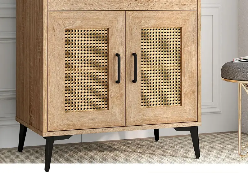تم تصنيع الهيكل من خشب وخشب زان متين عالي الجودة، ما يمنح القطعة ثباتًا جيدًا وتحملًا مناسبًا للاستخدام المستمر. هذا النوع من الخشب معروف بقدرته على المحافظة على شكله مع مرور الوقت، مما يجعل كورنر القهوة خيارًا عمليًا ضمن حلول التخزين اليومية.