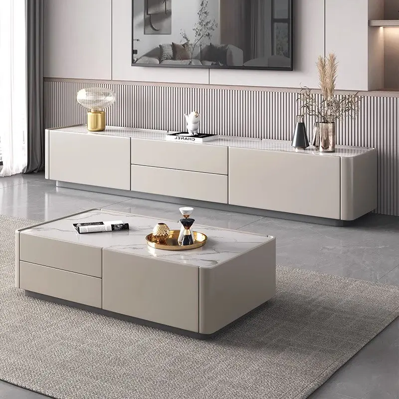 طقم طاولة قهوة مع تلفاز من طراز بسيط