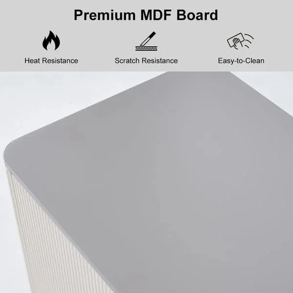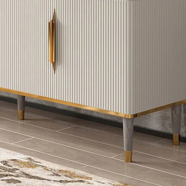 هذه طاولة تلفاز تجمع بين الخطوط العصرية والتفاصيل المموجة التي تمنحها حضورًا مميزًا داخل غرفة المعيشة أو غرفة النوم. الواجهة بتفاصيل أنيقة وتشطيبات معدنية بلون ذهبي تعطي إحساسًا بالفخامة دون مبالغة، لتناسب أنماط ديكور متعددة من الحديث إلى المودرن الكلاسيك.