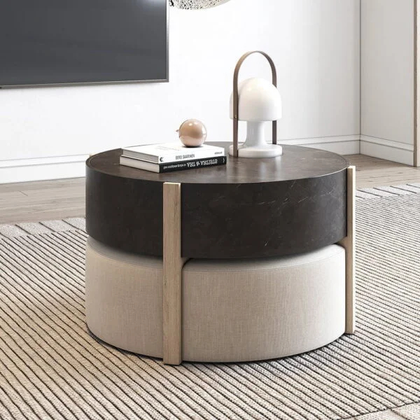 هذه الطاولة لا تُستخدم فقط لوضع الضيافة أو المشروبات، بل توفر أيضًا مقعدًا مدمجًا يمكن استخدامه بسهولة عند الحاجة، مما يجعلها مثالية للجلسات العائلية أو استقبال الضيوف في المساحات الصغيرة أو المتوسطة.