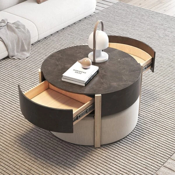 طاولة قهوة أنيقة وعملية مصنوعة من خشب عالي الجودة وسطح رخامي متين، تأتي بتصميم متوازن يناسب ديكورات المنازل في المملكة العربية السعودية ودول الخليج.