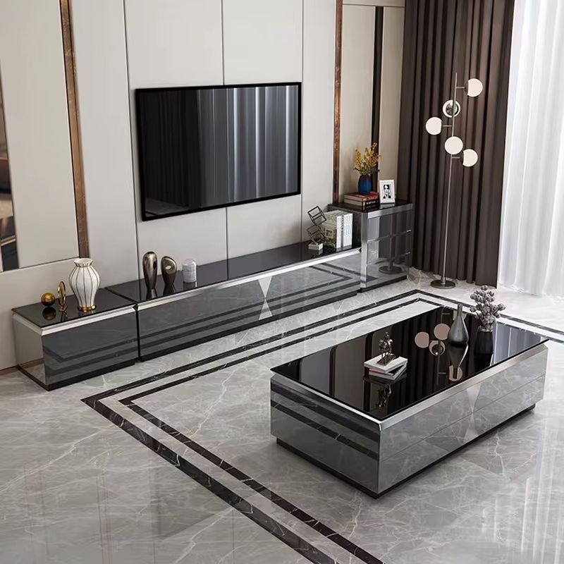 طقم طاولة قهوة مع تلفاز بتصميم انيق