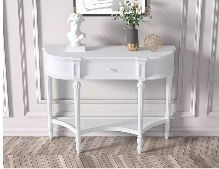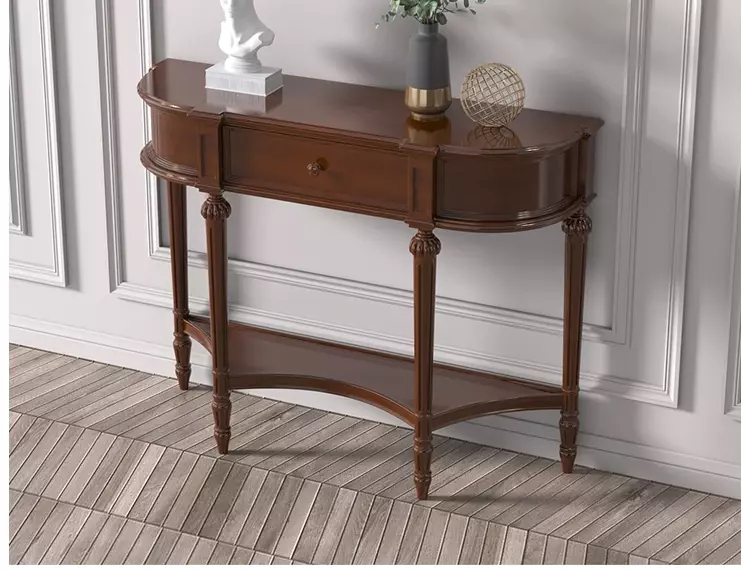 أضف لمسة من الأناقة إلى منزلك مع كونسول خشب بتصميم كلاسيكي يجمع بين الفخامة والعملية. مصنوع من خشب هندسي وخشب زان روماني عالي الجودة لضمان المتانة. يناسب كطاولة مدخل أو كجزء من ديكور غرفة المعيشة. متوفر بألوان متعددة سهل التنظيف بمسحة خفيفة فقط. يأتي بضمان سنتين ضد العيوب التصنيعية في دول مجلس التعاون الخليجي