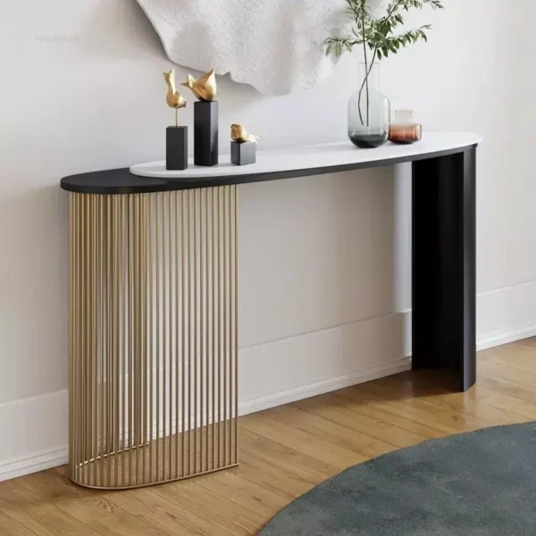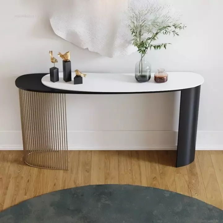 هذا الكونسول مثالي لوضعه في المدخل، حيث يضيف مظهراً فاخراً ومرحباً عند استقبال الضيوف. مع مزيج الألوان بين الأسود والأبيض، يتيح لك إبراز تفاصيل الديكور الأخرى في منزلك بطريقة مميزة وراقية.