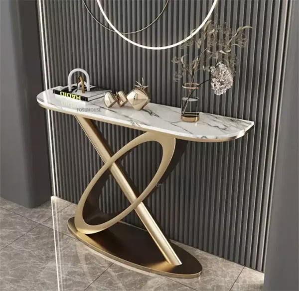 يمتاز الكونسول بإطار معدني متين وسطح من الرخام الفاخر، مما يجعله اختيارًا مثاليًا لكل من يبحث عن الفخامة والمتانة في آن واحد.