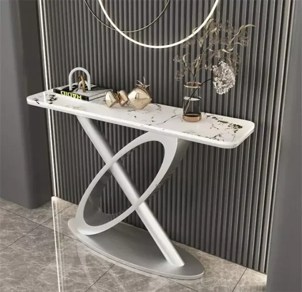 أضف لمسة من الأناقة العصرية إلى منزلك مع هذا الكونسول المودرن بتصميمه المميز. مصنوع من هيكل معدني متين وسطح رخام فاخر، مثالي لغرف المعيشة أو المداخل. يتوفر بألوان معدنية فاخرة تشمل الفضي، الذهبي، والأسود، مع سطح أبيض أو أسود. سهل التنظيف ويأتي بضمان لمدة سنتين ضد عيوب التصنيع في دول مجلس التعاون الخليجي.