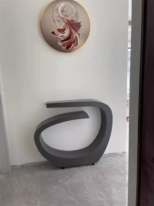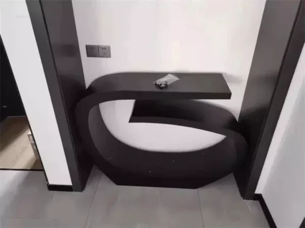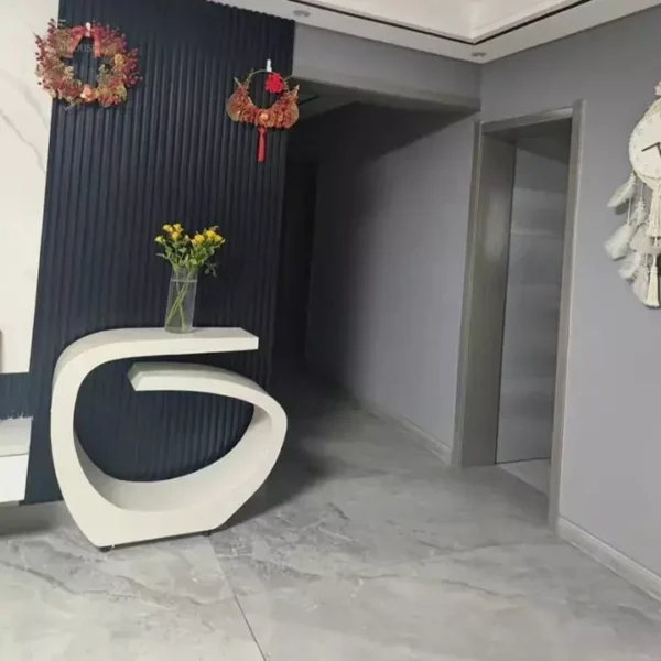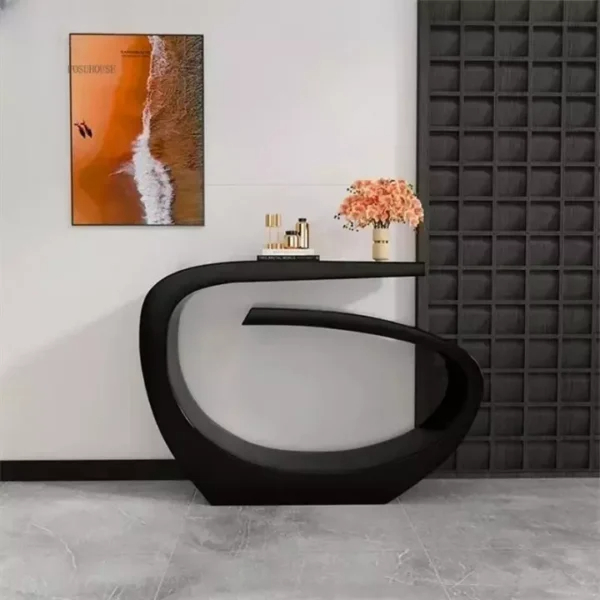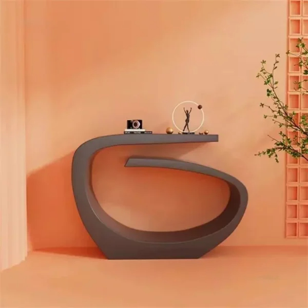 يأتي هذا الكونسول المودرن بتصميم فريد من نوعه بلمسة عصرية ومنحنية، مما يضيف شعوراً بالحركة والانسيابية في المكان. إنه الخيار الأمثل لمن يبحث عن قطعة فنية تجمع بين التصميم الحديث والعملية.