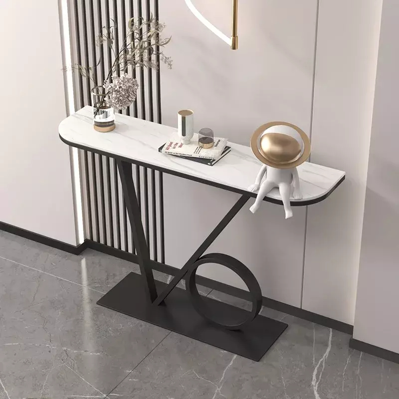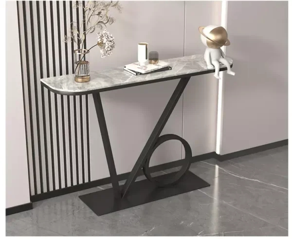 يتم تصنيع هذا الكونسول من خامات عالية الجودة لضمان المتانة وطول العمر. الهيكل مصنوع من معدن قوي، بينما السطح مصنوع من رخام عالي الجودة، مما يجعله مثالياً للديكور العصري.