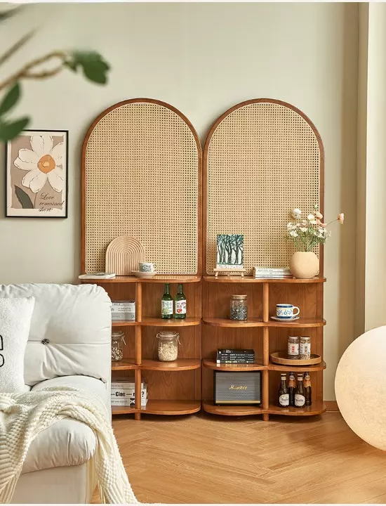 بارتشن خشب من تصميم ريفي مميز يضيف لمسة فريدة وأنيقة إلى غرفة المعيشة. يتميز هذا البارتشن بجودة تصنيعه العالية، حيث تم تصنيع هيكله من خشب هندسي وخشب زان روماني عالي الجودة. هذا المزيج من الخامات يضمن متانة واستدامة المنتج، مما يجعله إضافة قيمة لأي مساحة داخلية.