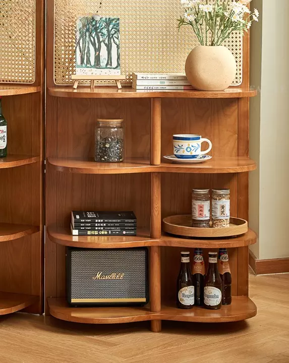 اللون الأساسي لهذا البارتشن هو اللون الخشبي الطبيعي، الذي يضفي إحساسًا بالدفء والراحة في المكان.