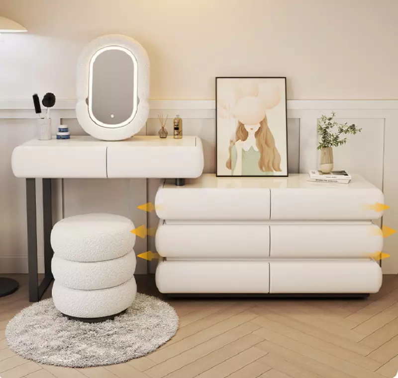 أضف لمسة من الأناقة والرقي إلى منزلك مع طاولة تسريحة المميزة من متجر ماستر روم. صُممت لتجمع بين البساطة والجمال لتكون إضافة رائعة لأي غرفة نوم أو مساحة داخلية. بفضل التصميم البسيط والعصري، تعد الخيار المثالي للأشخاص الذين يبحثون عن قطعة تجمع بين الأداء العملي والمظهر الجذاب.