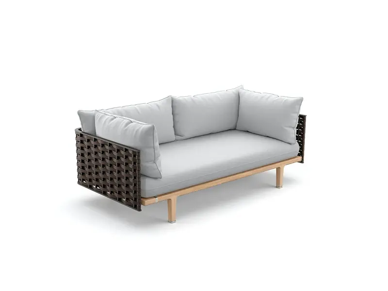 كنب جلسات خارجية أنيق مصنوع من الروطان مع هيكل خشبي متين من خشب الزان الروماني عالي الجودة. يتميز بتصميم عصري ومريح مع مقاعد محشوة بإسفنج عالي الجودة ومغطاة بقماش مقاوم للعوامل الخارجية. مناسب للجلسات الخارجية بفضل سهولة تنظيفه بمسحة بسيطة. يتوفر بمقاسات متنوعة لتناسب احتياجاتك، ويأتي بلون خشبي طبيعي يضفي لمسة جمالية على المكان. مع ضمان لمدة سنتين ضد العيوب التصنيعية.
