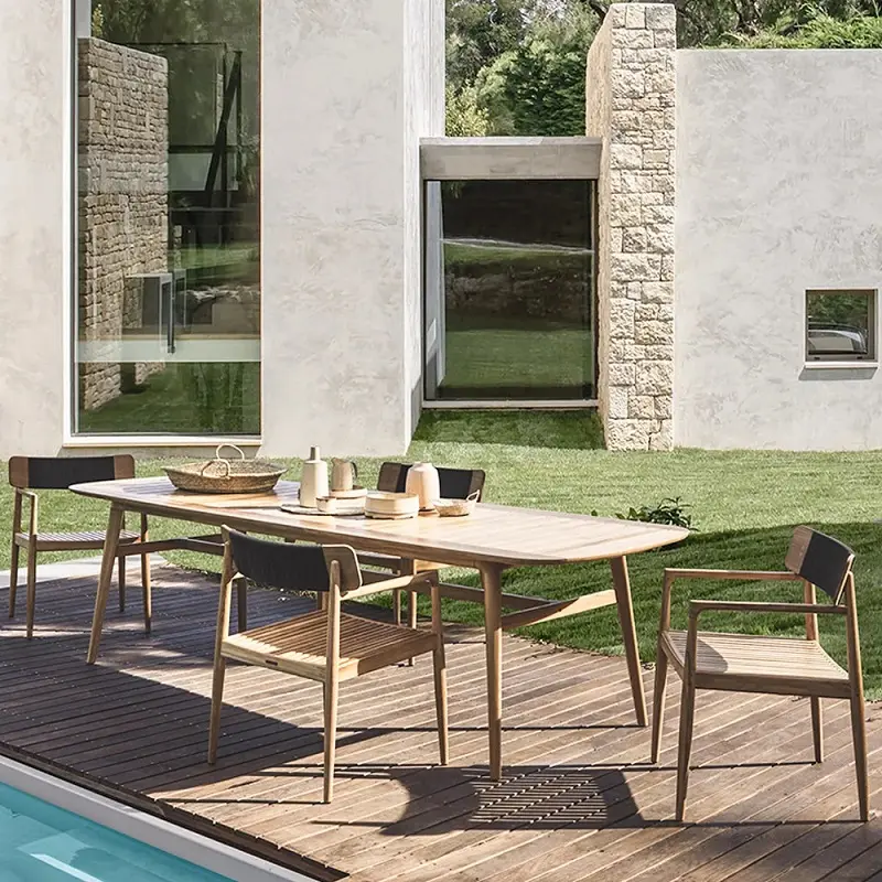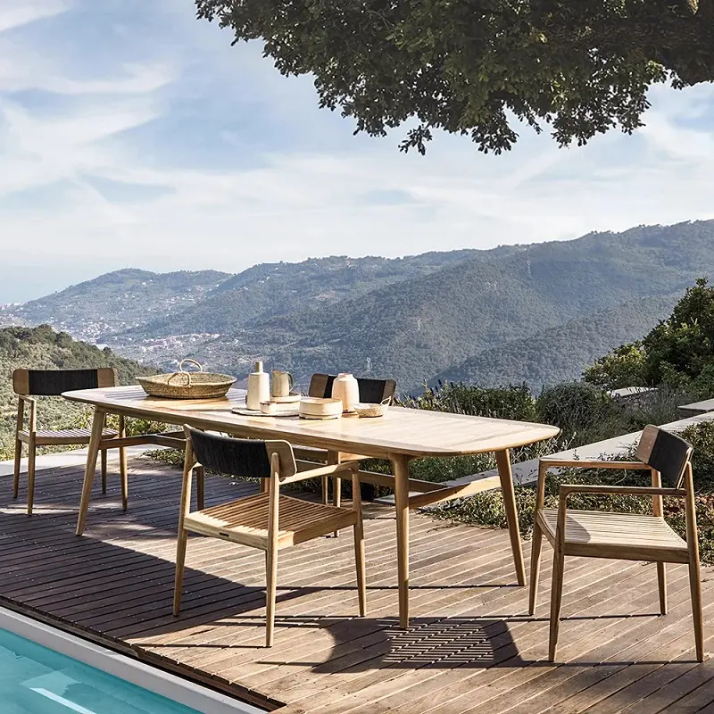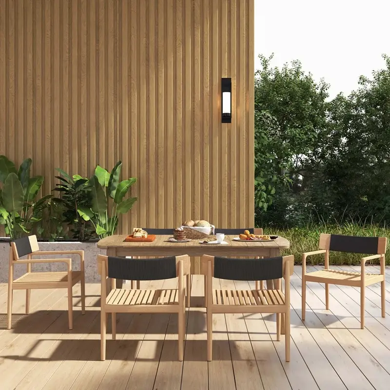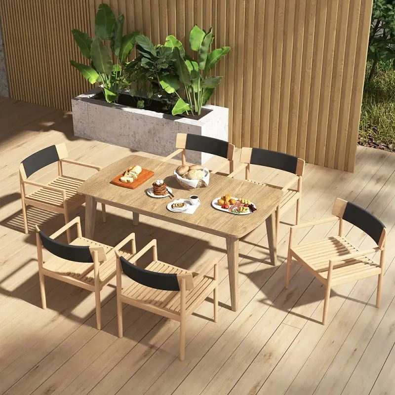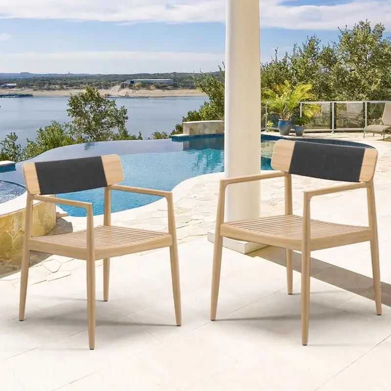 كرسي طاولة طعام للجلسة الخارجية تم تصنيع هذا الكرسي من خشب هندسي وخشب زان روماني متين عالي الجودة، المعروف بقوته وتحمله الممتاز للاستخدام اليومي، مما يجعله مثاليًا للأثاث الخارجي. يتميز خشب الزان بصلابته الطبيعية ومقاومته الجيدة للرطوبة والعوامل الجوية المعتدلة، ما يمنح الكرسي عمرًا أطول واستخدامًا أكثر أمانًا في البيئات المفتوحة مثل الحدائق والبلكونات.