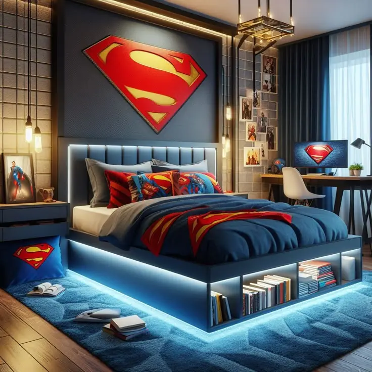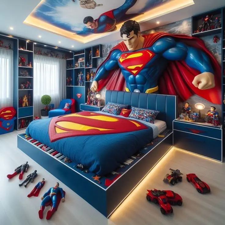 اللون كما هو موضح في الصورة، مستوحى من تصميم سوبر مان المعروف بألوانه المميزة التي تضيف لمسة من الطاقة والحيوية إلى الغرفة.