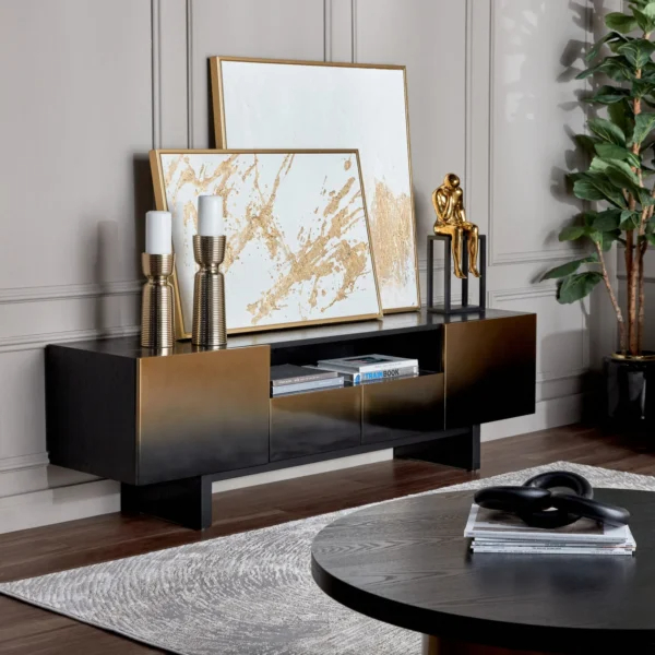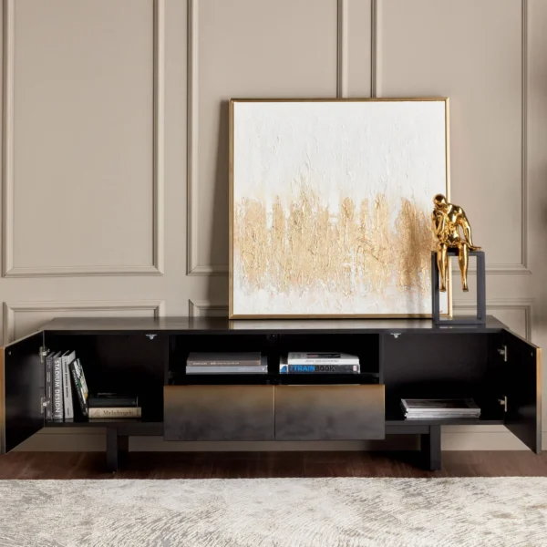 طاولة تلفزيون مودرن اسود خيار أنيق وعملي يرفع من جمال أي غرفة اقتنيها الآن من متجر ماستر روم لإطلالة أكثر فخامة.