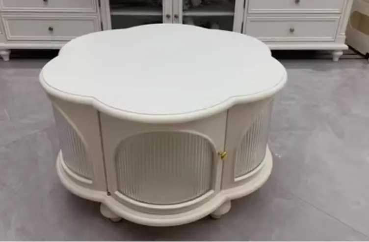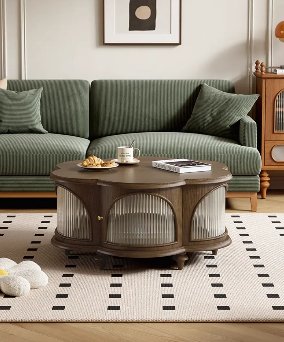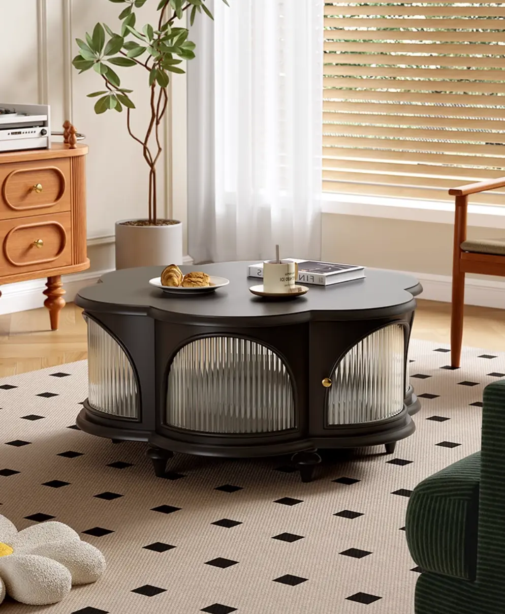 طاولة قهوة دائرية بتصميم كلاسيك تضفي لمسة أنيقة على غرفة المعيشة. مصنوعة من خشب هندسي وخشب زان روماني عالي الجودة، مع زجاج عالي الجودة. بمقاسات ارتفاع 35 سم وعرض 80 سم. تتوفر بألوان متعددة مع ضمان لمدة سنتين ضد عيوب التصنيع. كود المنتج: MR4051.