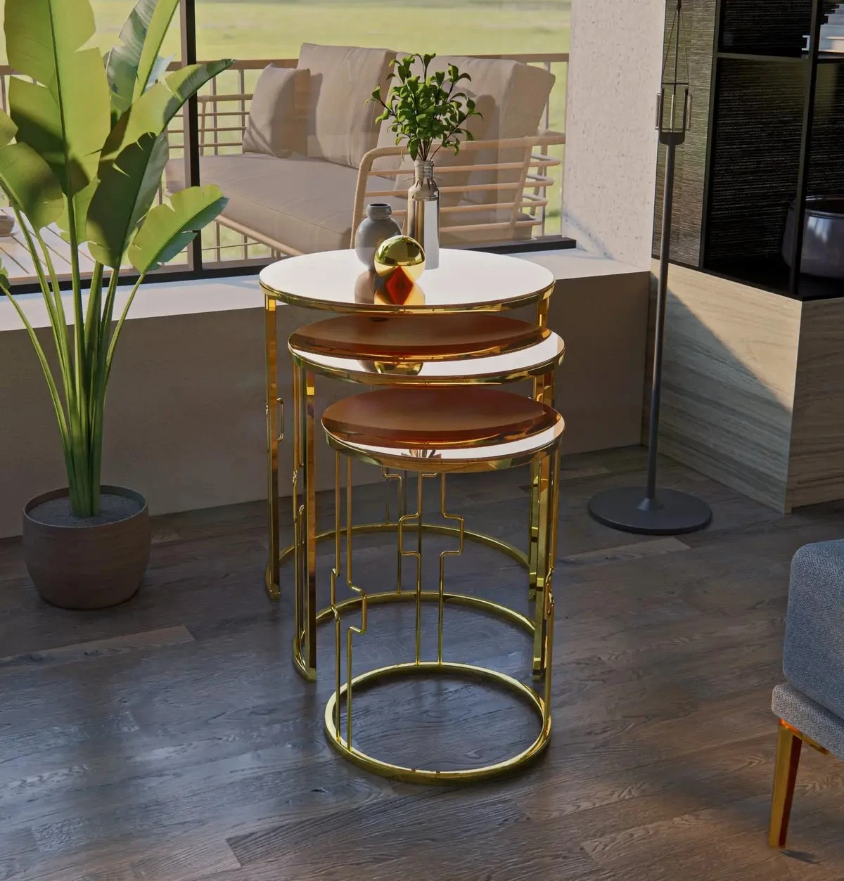 يتألف طقم الطاولات من ثلاثة قطع متناسقة بأحجام مختلفة، مما يوفر لك المرونة في ترتيبها واستخدامها حسب الحاجة.