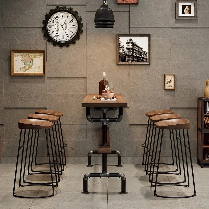 طقم طاولة بار خشبي تتميز الطاولة بلون خشبي طبيعي يتناغم مع مختلف أنماط الديكور الداخلي، سواء في المنازل الحديثة أو الكلاسيكية، مما يجعلها قطعة أثاث متعددة الاستخدامات يمكن تنسيقها بسهولة مع باقي الأثاث المنزلي.