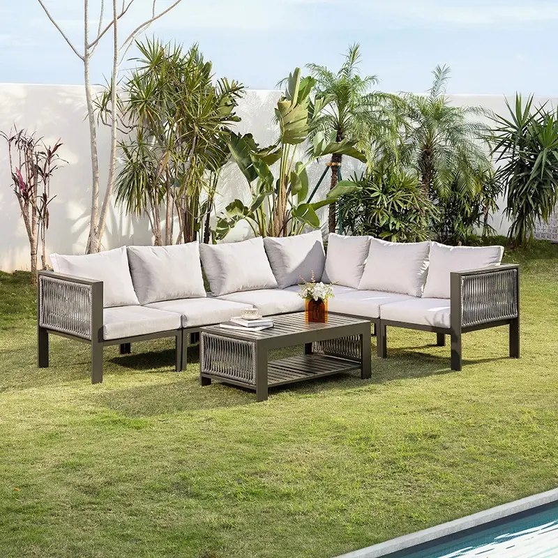 طقم كنب جلسات خارجية زاوية مع طاولة قهوة