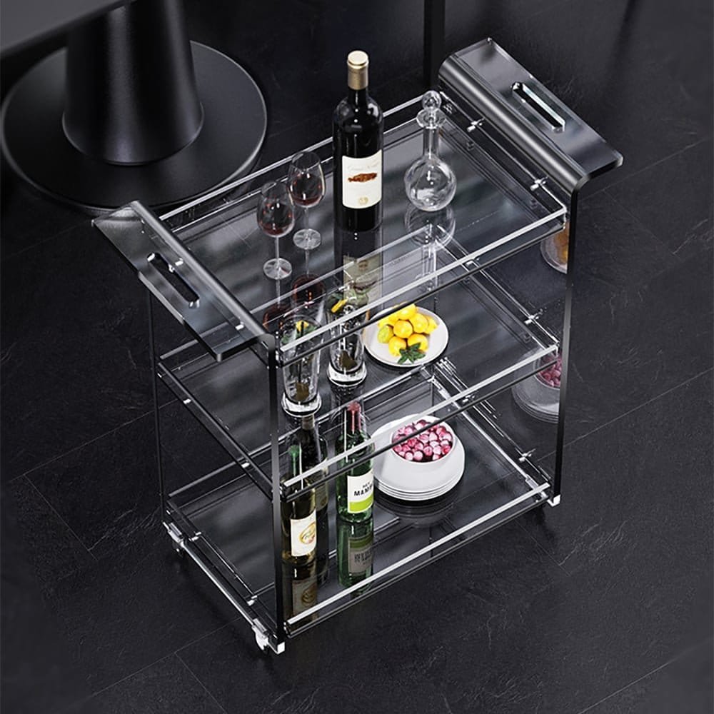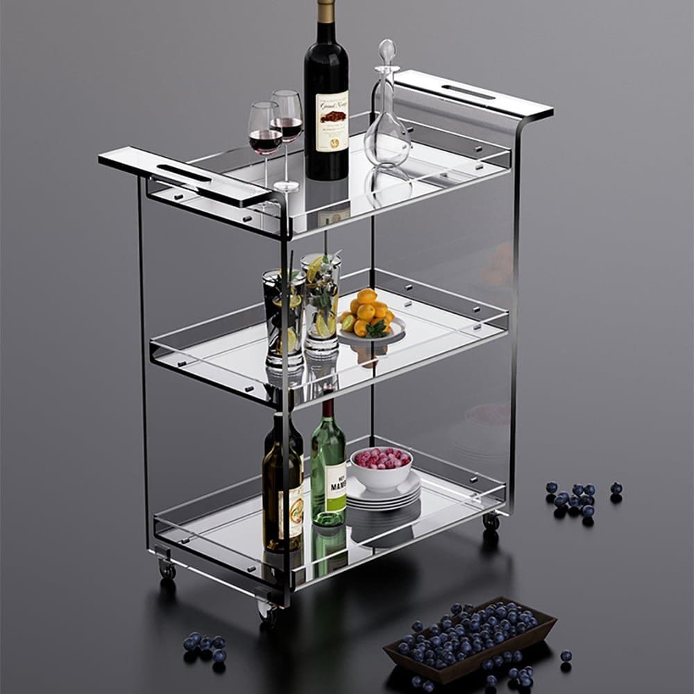 تم تصميم عربة التقديم بمواد عالية الجودة من الأكريليك المتين، ما يضمن مظهرًا عصريًا وانسيابيًا ينسجم بسهولة مع أي ديكور داخلي. كما أن العجلات الأربع المدمجة تمنحك مرونة وسهولة في التنقل بين الغرف، مما يجعلها عملية للاستخدام اليومي والمناسبات الخاصة.