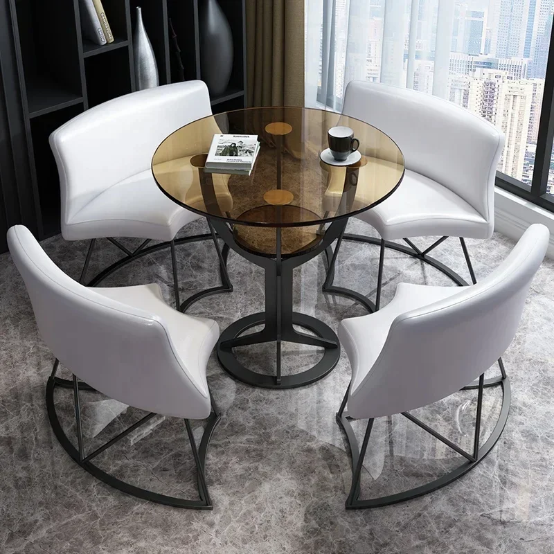 طاولة طعام مستديرة من ماستر روم بتصميم عصري أنيق، مصنوعة من المعدن الصلب عالي الجودة مع سطح زجاجي داكن يمنح إحساسًا بالفخامة واتساع المساحة. متوفرة بألوان متعددة لتناسب جميع الأذواق ومساحات الغرف، مما يجعلها خيارًا مثاليًا يجمع بين الجمال والمتانة للاستخدام اليومي.