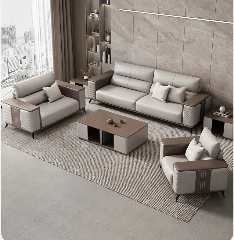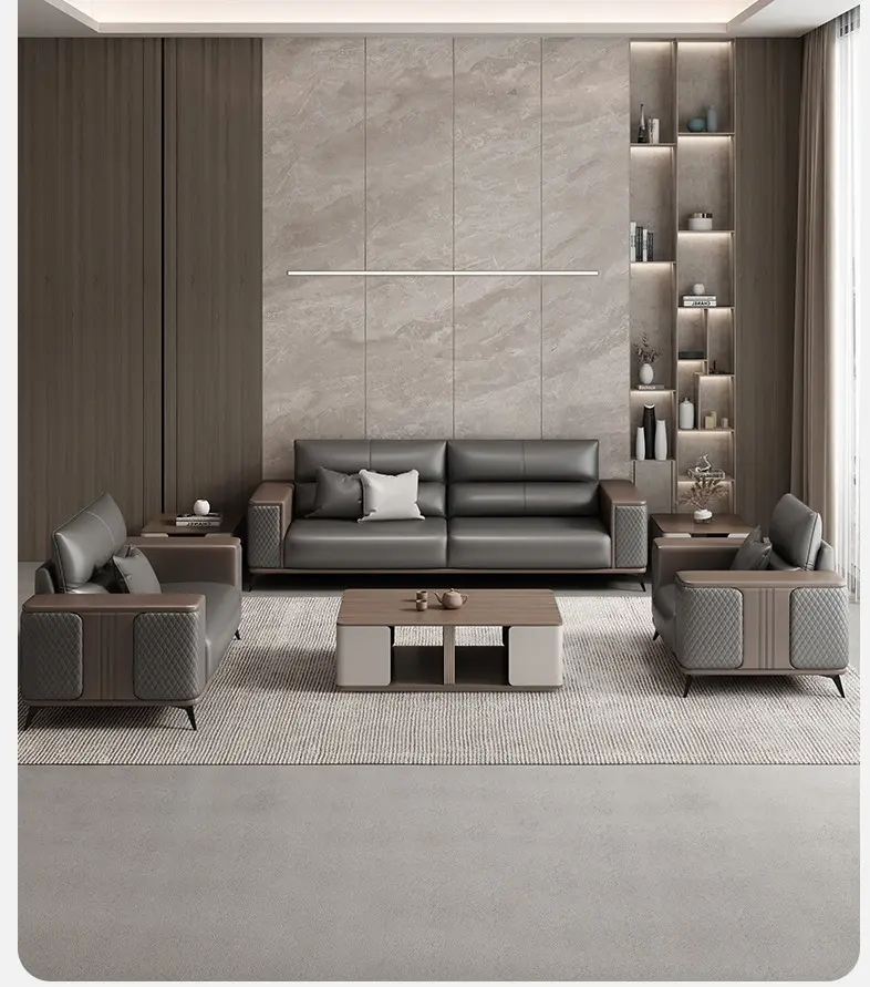 تم اختيار المواد بعناية لضمان المتانة والراحة، حيث صُمم الهيكل من خشب هندسي وخشب زان متين عالي الجودة ليدوم معك لسنوات طويلة. الحشو مصنوع من إسفنج عالي الكثافة يمنحك دعمًا ممتازًا للظهر والجلوس، فيما يغطيه جلد فاخر ناعم الملمس يمنح شعورًا بالترف وسهولة في التنظيف بمسحة بسيطة.