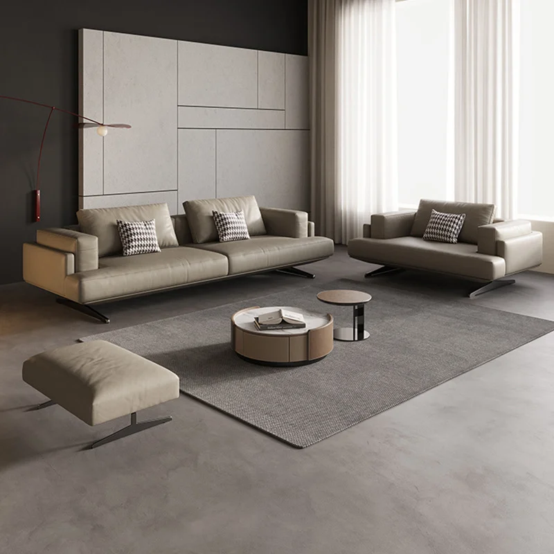 طقم كنب مودرن ايطالي يجمع بين الراحة والفخامة، مصنوع بدقة من خشب هندسي وزان روماني عالي الجودة مع قاعدة معدنية متينة، ومغطى بطبقة من الجلد الإيطالي الفاخر المبطن بإسفنج عالي الكثافة. متوفر بعدة مقاسات تناسب جميع المساحات (عرض 120 / 170 / 210 سم) اثاث فاخر سعودي.