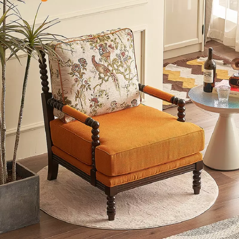 كرسي منفرد بتصميم ريفي أنيق يناسب مختلف المساحات. مصنوع من هيكل خشبي هندسي مع خشب زان روماني عالي الجودة ومبطن بقماش ناعم وإسفنج عالي الكثافة للراحة. يتميز بسهولة التنظيف وألوان متعددة تضيف لمسة فريدة لديكور منزلك. مثالي للاسترخاء أو استقبال الضيوف. يأتي مع ضمان سنتين ضد عيوب التصنيع لضمان الجودة والراحة