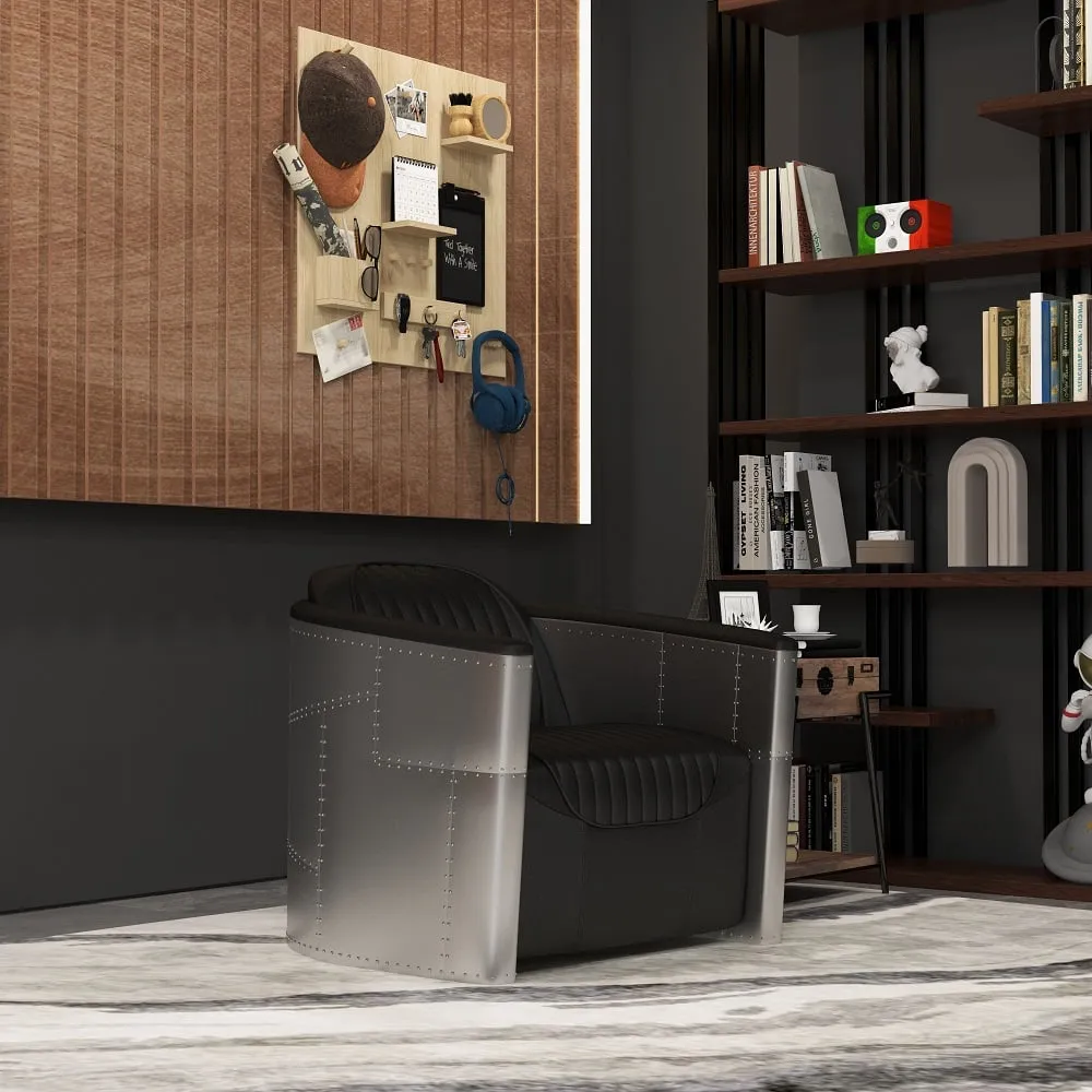 كرسي مصمم لمن يحب الأثاث المودرن بطابع مريح واضح، مع تفاصيل مسامير مكشوفة تعطيه شخصية قوية شكل البرميل يمنح جلوسًا يحتضن الجسم بشكل مريح، فيكون مناسبًا كـ كرسي غرفة معيشة أو كرسي قراءة في زاوية هادئة، وكذلك خيار أنيق لغرفة النوم أو غرفة الدراسة.