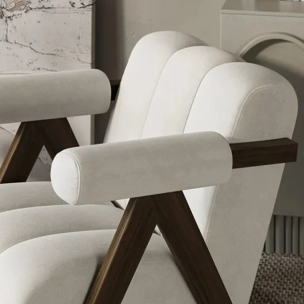 اطار الكرسي المفرد الداخلي مصنوع من خشب هندسي وخشب زان متين عالي الجودة، ما يوفر ثباتًا استثنائيًا ويطيل من عمر الكرسي بشكل ملحوظ. القاعدة والأرجل مصممة لتعطي دعمًا متوازنًا للهيكل، مما يضمن أداءً مثاليًا للاستخدام اليومي. تصميم الأذرع المنحنية والحشوة الكثيفة يعكسان اهتمامًا بالتفاصيل وجودة الصنع.