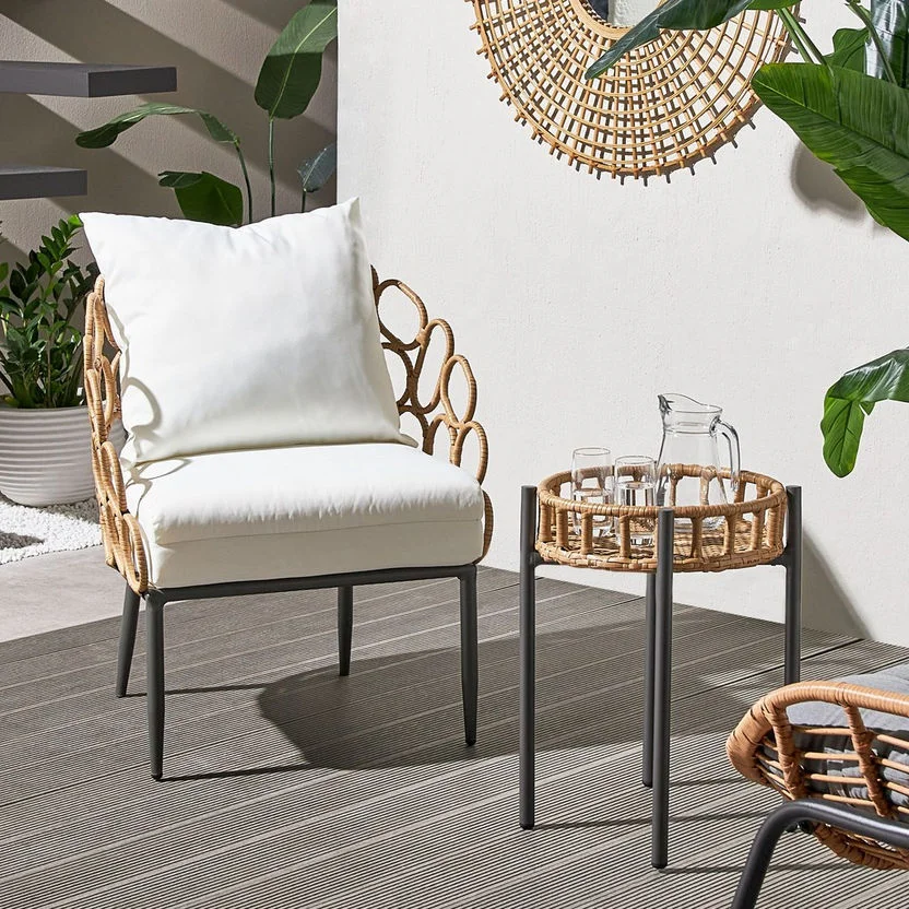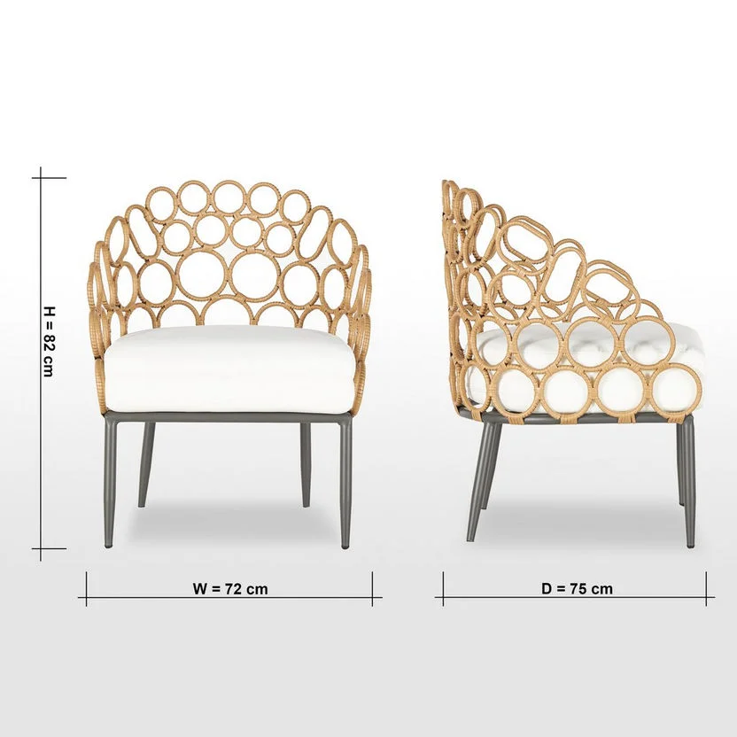 كرسي للمساحات الخارجية مصمم ليوفر راحة وأناقة في الهواء الطلق. يتميز بتصميم مودرن ومفرد يتناغم مع مختلف أنماط الديكور، مع إطار من الروتان الجودة وأرجل معدنية قوية. بأبعاد مثالية وضمان لمدة سنتين ضد عيوب التصنيع، يُعتبر اختيارًا مثاليًا لتجربة مريحة ومميزة في الهواء الطلق
