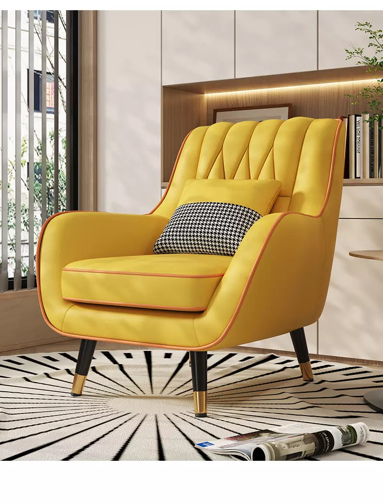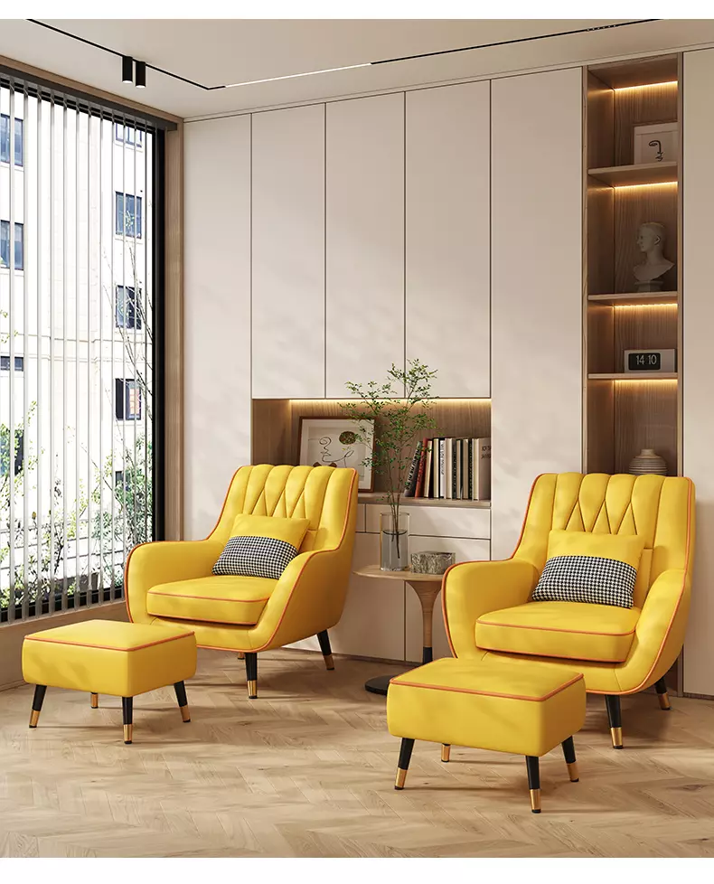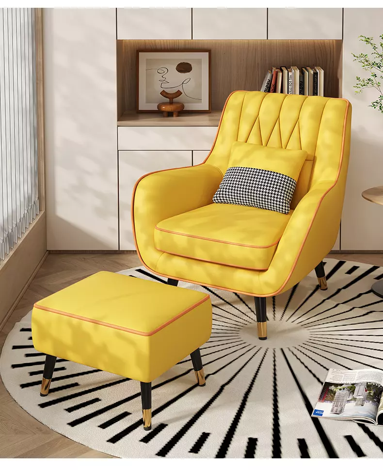 كرسي مفرد أنيق ومريح مع مسند للقدم، مثالي لغرفة المعيشة. مصمم من خشب هندسي وخشب زان روماني عالي الجودة، ومحشو بإسفنج عالي الجودة ومغطى بقماش ناعم. متوفر بألوان متعددة ليناسب ديكور منزلك. ضمان سنتين ضد العيوب التصنيعية في دول مجلس التعاون الخليجي.
