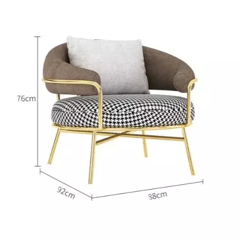 كرسي مفرد مودرن فاخر مصنع من مواد عالية الجودة. الهيكل مصنوع من معدن قوي يضمن المتانة والاستقرار لفترة طويلة. المقعد والظهر محشوان بإسفنج عالي الجودة، مما يوفر راحة فائقة عند الجلوس. كما أن الكرسي مغطى بقماش عالي الجودة، يضيف ملمسًا ناعمًا وفاخرًا للجلوس.