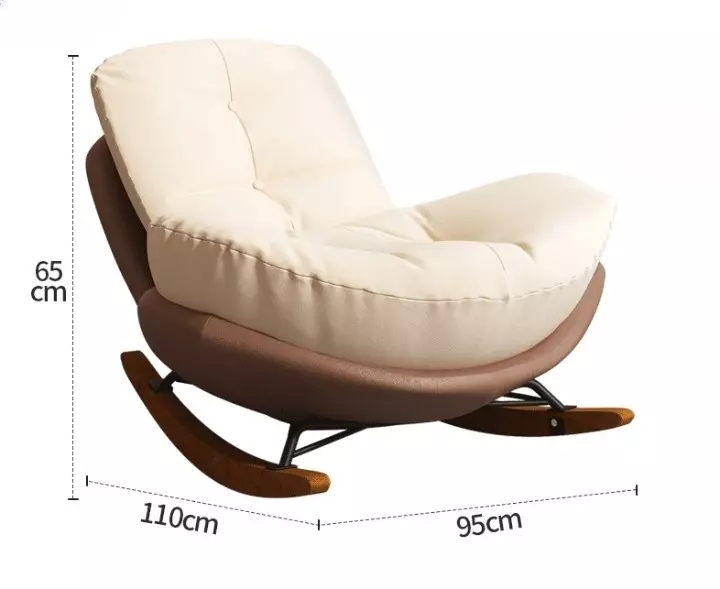 كرسي هزاز مودرن يوفر الراحة والفخامة في تصميم عصري وأنيق. مصنوع من هيكل معدني قوي، مغطى بجلد فاخر مع مقعد محشو بإسفنج عالي الجودة ومغطى بقماش ناعم. يتميز بأرجل من خشب هندسي وخشب زان روماني لضمان الثبات والمتانة. مثالي للاسترخاء في غرفة المعيشة أو أي مكان ترغب في إضافة لمسة من الراحة. يأتي بمقاسات مناسبة لسهولة الجلوس والتمدد، مع ضمان لمدة سنتين ضد عيوب التصنيع.