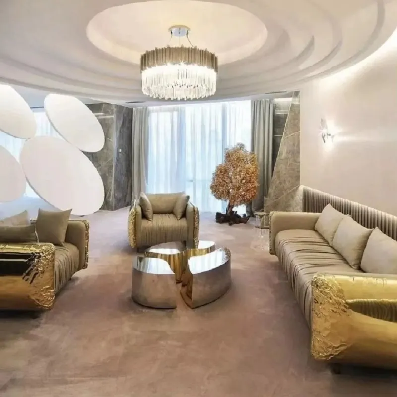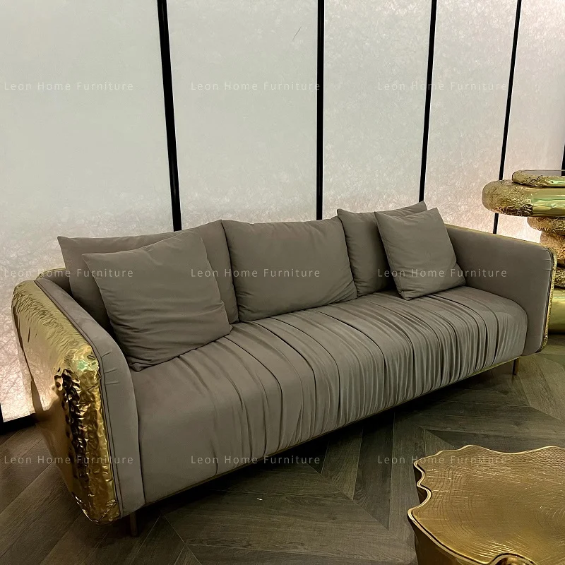 كنب ملكي فاخر من ماستر روم هو الخيار الأمثل لكل من يبحث عن الفخامة والتميز في منزله، بتصميم ملكي يعكس الأناقة والرقي وتطعيمات ذهبية مع خامات فاخرة مصنوع منها الكنب ومغطى بجلد ايطالي فاخر يكمل أناقة التصميم ويمنحه النعومة ليساعدك على الاسترخاء والراحة أثناء الجلوس عليه، متوفر بألوان فاتحة تضفي لمسة مريحة وشعور بالاتساع في المكان.
