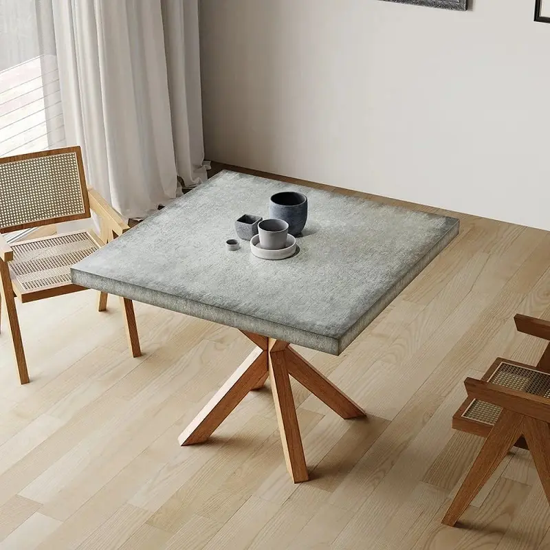 التصميم هنا يجمع بين البساطة والدفء في خط واحد: مظهر نظيف، تفاصيل هادئة، وشكل مربّع يمنح المكان إحساسًا بالانتظام. هذا الأسلوب يناسب الديكورات الحديثة، كما ينسجم بسهولة مع الكراسي المختلفة، ويُعد خيارًا مناسبًا لمن يفضلون الأثاث العملي الذي يبدو أنيقًا دون مبالغة.