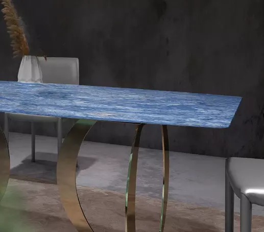 تعد طاولة الطعام الرخامية هذه الخيار الأمثل لإضافة لمسة من الفخامة إلى غرفة الطعام. مصنوعة من رخام عالي الجودة، بسطح أزرق أنيق وهيكل معدني قوي. تشمل الطاولة عدة مقاسات مع كراسي مصنوعة من خشب زان روماني عالي الجودة ومغطاة بقماش فاخر. تتميز بسهولة التنظيف بضربة خفيفة ومسحة رقيقة، مما يجعلها عملية وجذابة في آن واحد. تأتي مع ضمان سنتين ضد عيوب التصنيع.
