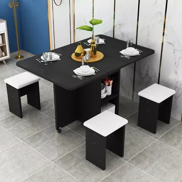 طاولة طعام قابلة للطي مع 4 كراسي، مثالية للمساحات الصغيرة والاستخدام اليومي. تتميز بتصميم عصري وخامات عالية الجودة من الخشب الهندسي وخشب الزان الروماني. مقاساتها المثالية وألوانها المتعددة تجعلها خيارًا مثاليًا لأي ديكور داخلي. تأتي مع ضمان لمدة سنتين ضد العيوب التصنيعية، مما يجعلها اختيارًا آمنًا وموثوقًا للمنازل والمكاتب على حد سواء.