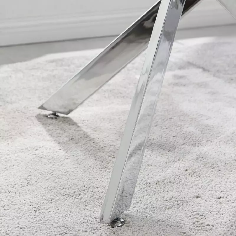 اجعل جلسات الطعام أكثر أناقة وراحة مع طاولة طعام الزجاجية الحديثة التي تضيف لمسة من الفخامة إلى منزلك. تتميز طاولة طعام بسطح زجاجي لامع يعكس الضوء بشكل رائع، مما يضفي شعورًا بالرحابة. الكراسي المرفقة مصنوعة بعناية لضمان أقصى درجات الراحة، مع قاعدة متينة مبطنة بطبقة من الجلد الفاخر الذي يضيف لمسة من الأناقة العملية.
