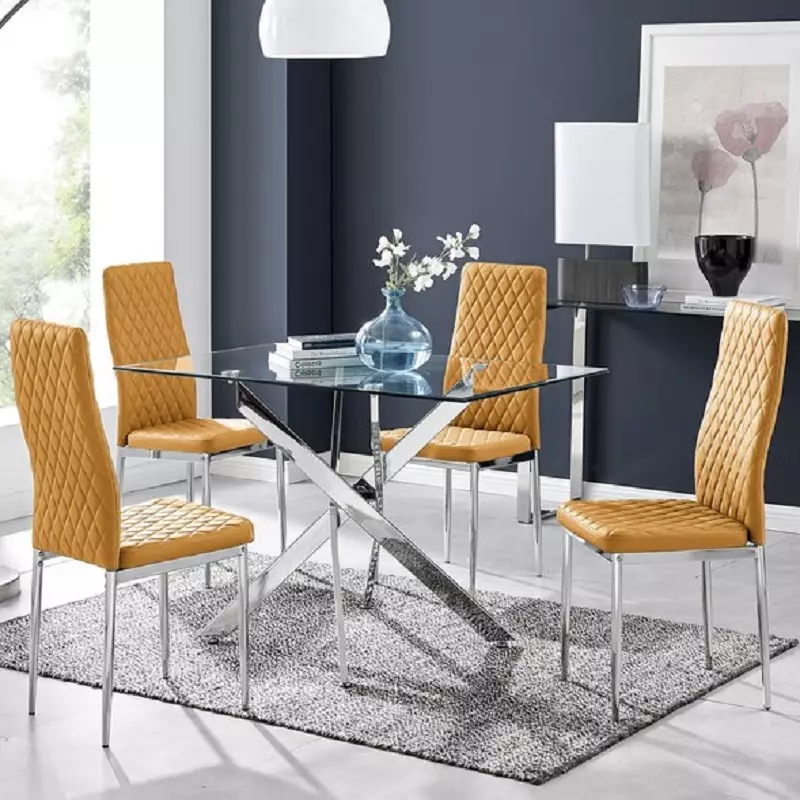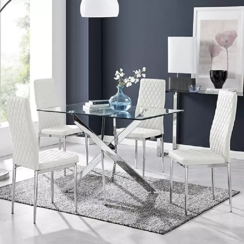 طاولة طعام زجاجية مع كراسي مريحة بتصميم عصري