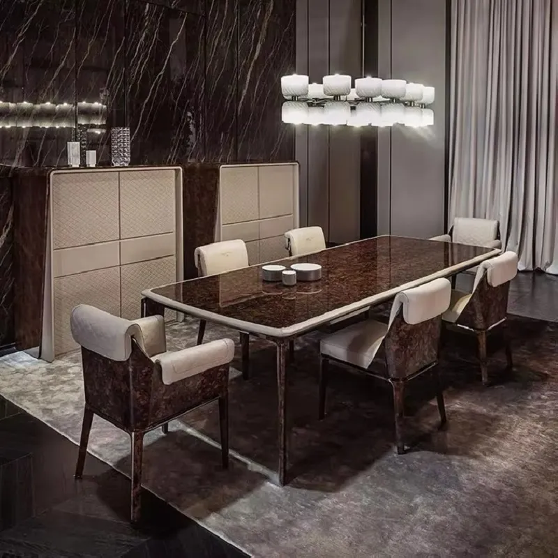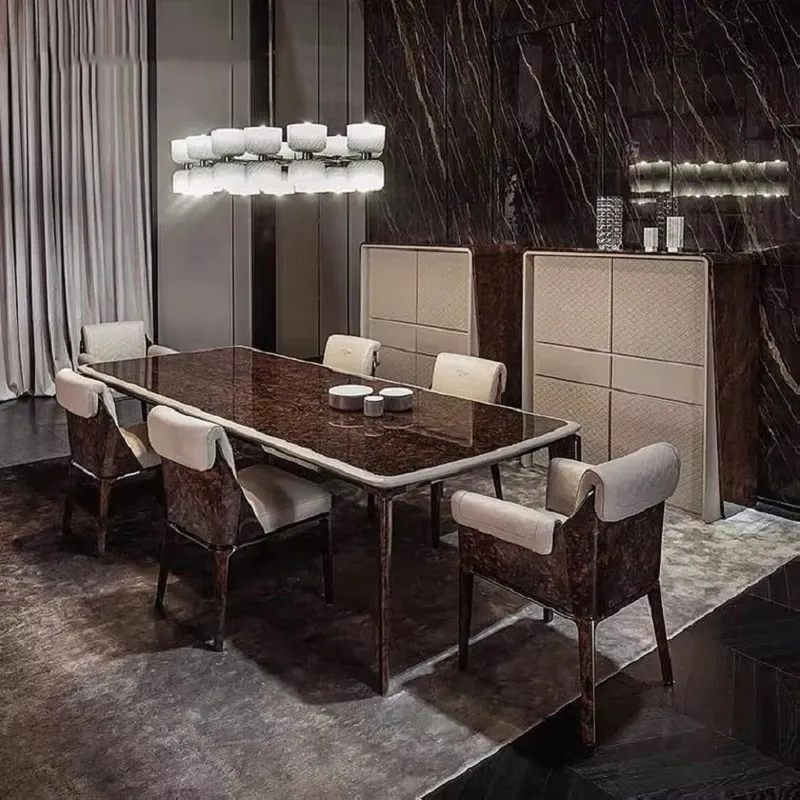 طاولة طعام فاخرة مع كراسي جلد إيطالي – إضافة أنيقة لغرفة الطعام من ماستر روم