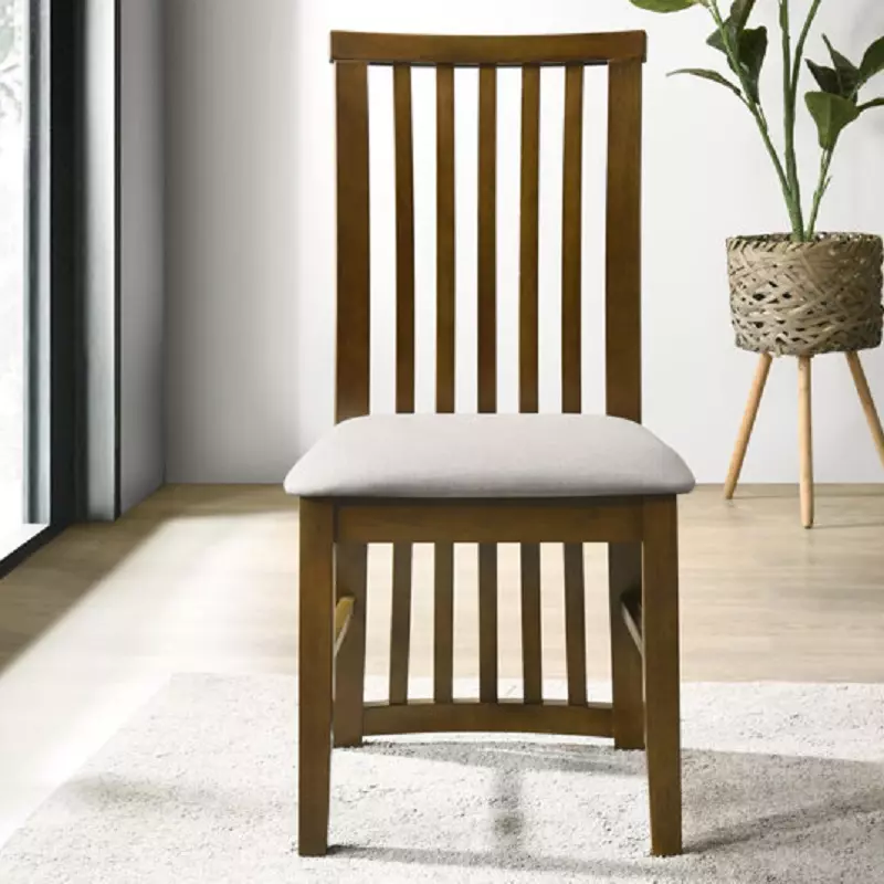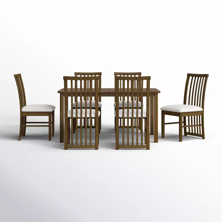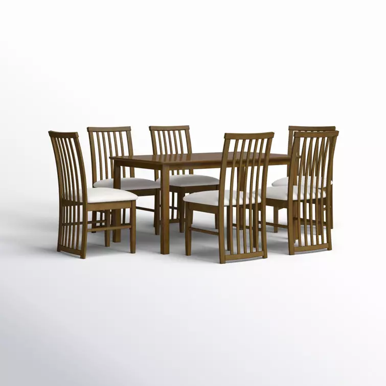 هيكل الطاولة مصنوع من خشب زان عالي الجودة مع سطح خشبي هندسي يتميز بالمتانة وسهولة التنظيف. الكراسي مزودة بمقاعد قماشية مبطنة بالإسفنج عالي الكثافة لضمان راحة استثنائية.