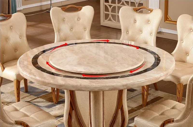طاولة طعام رخامية دائرية مع كراسي كلاسيكية