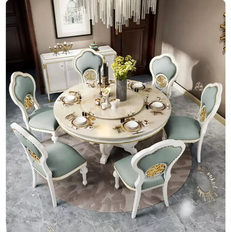 - اسم المنتج: طاولة طعام دائرية مع كراسي بتصميم فاخر.