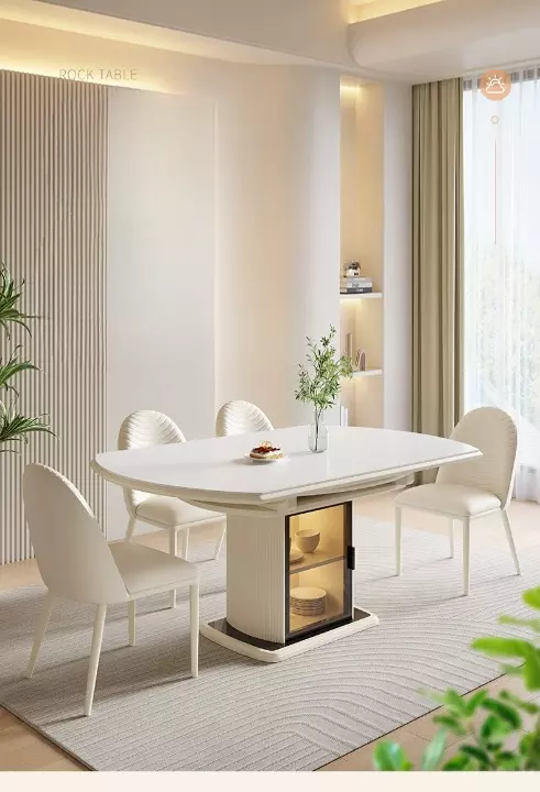 استمتع بأناقة غرفة الطعام مع طاولة طعام مميزة. مصنوعة من خشب هندسي وخشب زان روماني عالي الجودة، وتأتي بأحجام متعددة تناسب جميع المساحات. الكراسي مغطاة بجلد فاخر ومحشوة بإسفنج عالي الجودة لراحة قصوى. اللون الأبيض الأنيق يتناسب مع مختلف الديكورات. سهولة في التنظيف بفضل التصميم العملي، وضمان لمدة سنتين ضد عيوب التصنيع. أضف لمسة من الفخامة إلى منزلك مع هذه الطاولة الرائعة.