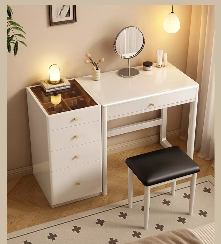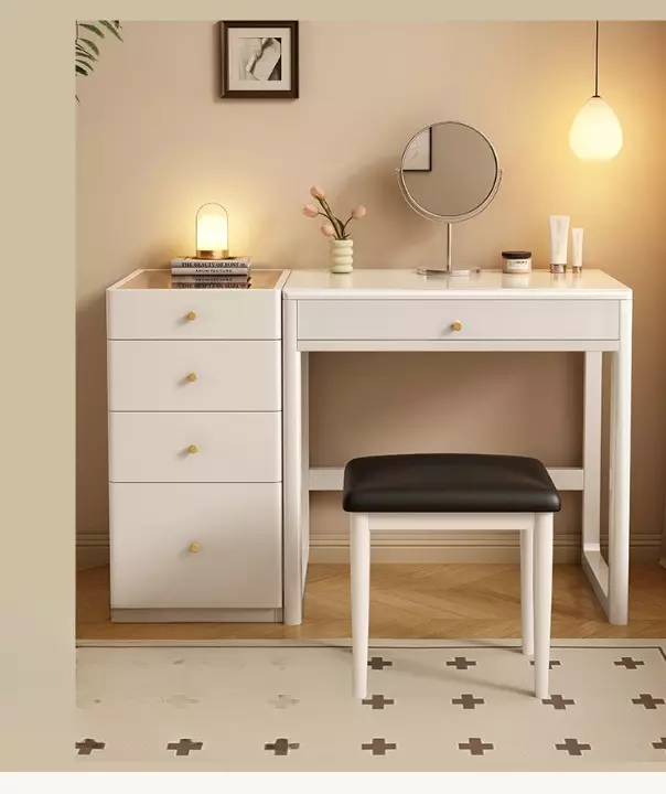 إذا كنت تبحث عن قطعة أثاث تضيف لمسة عصرية إلى غرفة نومك، فإن هذه الطاولة التسريحة هي الخيار المثالي. تتميز بأدراج متعددة لتخزين أدوات التجميل والإكسسوارات، ما يجعلها عملية وأنيقة في آنٍ واحد.
