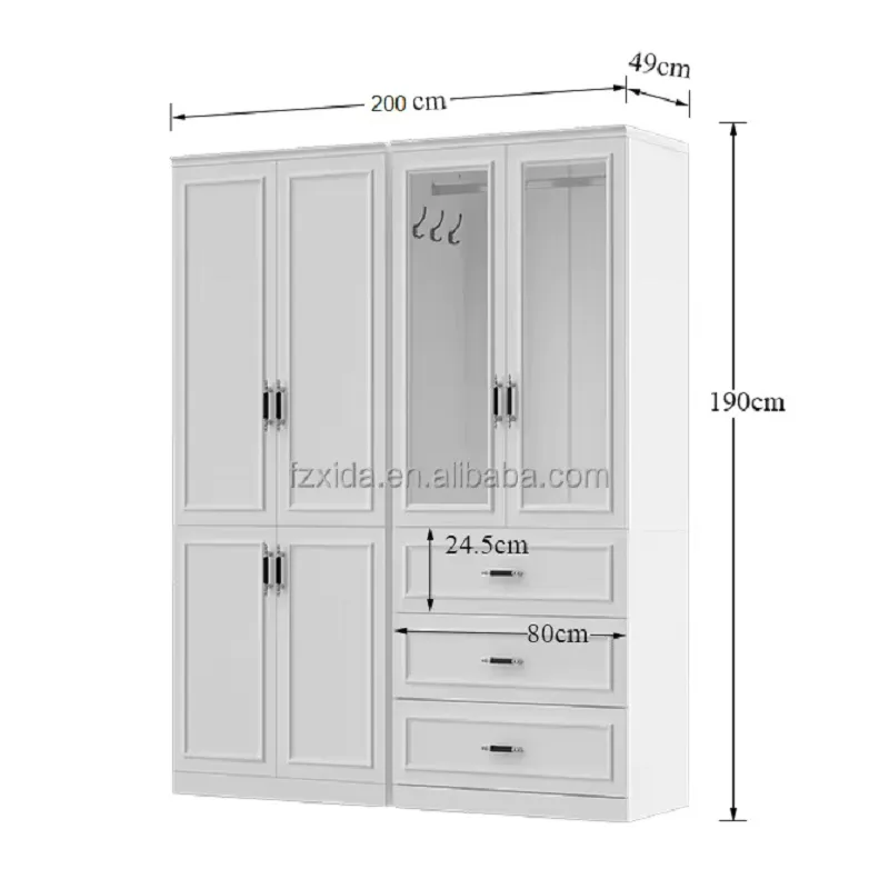 عرض 200 سم: ارتفاع 190 × عمق 49 × عرض 200 سم.